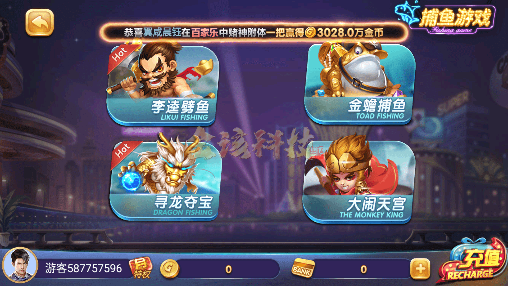 捕鱼游戏:李逵劈鱼,金蟾捕鱼,寻龙夺宝,大闹天宫